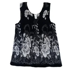 Liz Baker Woman Black & White Floral Crinkle Sleeveless Top 2X