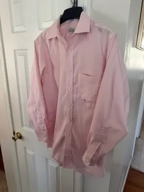 Eagle Shirtmakers Pink Dress Shirt 15.5 32/33 Non-Iron 100% Cotton Mens Medium