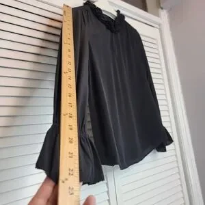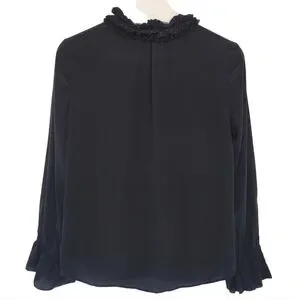 J.CREW Silk Ruffle High Neck Black Blouse Women's 6P Long Sleeves Ruffle Cuffs