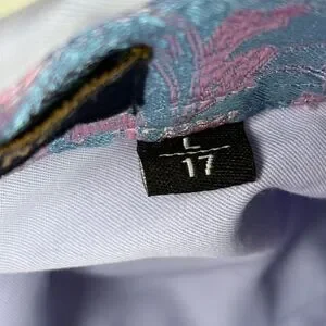 Hisdern Mens Blue Dress Shirt Size Large 17 Floral Flip Cuff