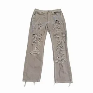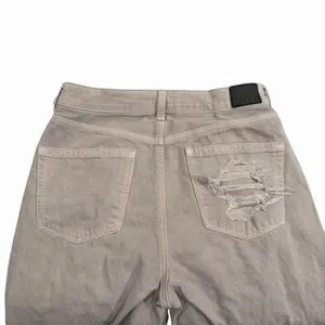 AE Jeans Women’s Distressed Mom Jeans Relaxed Tapered Cream Size 8 4597