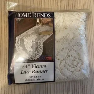 HomeTrends 54" Vienna Lace Runner Ivory Made In The USA. Condition is New with tags. Shipped with USPS Ground Advantage.
