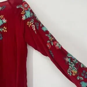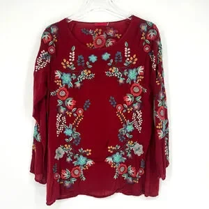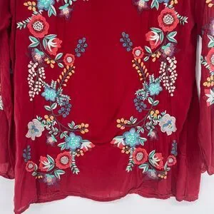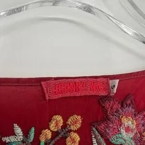 Johnny Was Top Women S Red Embroidered Floral Boho Hippie Peasant Western