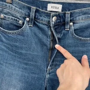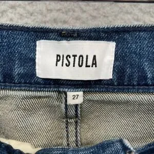 Pistola Broadway Jeans Womens 27 4 Medium Wash Blue High Rise Wide Leg Raw Hem