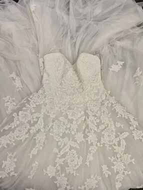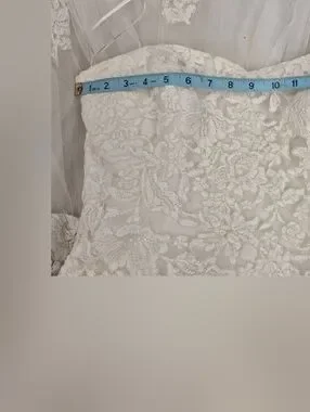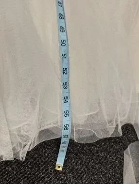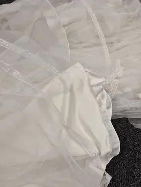 Small Tears: There are some small tears in the inner layers of the tulle near the hemline (typical for pre-owned tulle gowns). Because of the many layers and volume of the skirt, these are very difficult to see when worn, or could be easily trimmed/repaired by a seamstress.