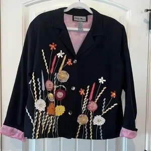 Vintage black floral wearable art blazer jacket sz XL boho hippie SO cute unique