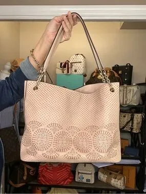 Tory Burch Perforated Leather Tote + Matching Wallet Set Blush Pink 2016 Bundle