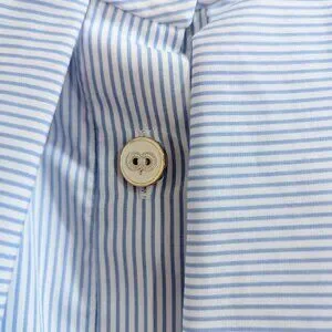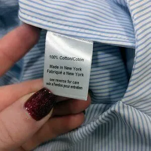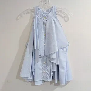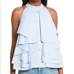 CAROLINE CONSTAS Like New Adrie Striped Ruffle Blouse L Blue White Sleeveless