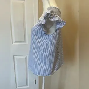 SHEIN Blue White Striped Lace Blouse Cottagecore Flutter Sleeve Boho Top Large