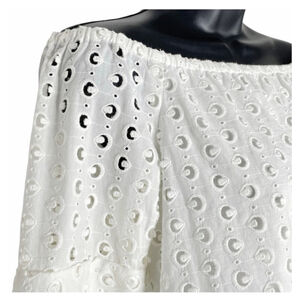 Boho, Peasant, Eyelet, Embroidered, Off Shoulder, Bell Sleeve, Romantic, Festival, Designer, Contemporary, Black Top, BAILEY44, Size Medium