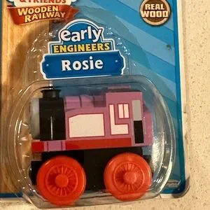 This Thomas the Train action figure, featuring the beloved character Rosie, is a must-have for any fan! Made by Tomy and in its original packaging, this item is a great addition to any toy collection. The pink color and train vehicle type make this figure stand out from the rest. Perfect for both kids and collectors, this original licensed reproduction is sure to bring joy to whoever receives it. 18 months +