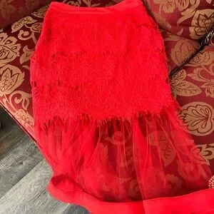 Fashion Nova Red Lace Midi Skirt with Tulle Hem