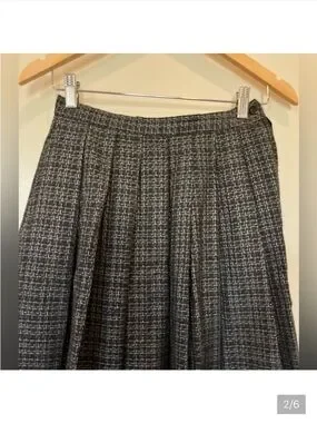 Vintage Grey Plaid Woven Wool-blend Full Midi Skirt