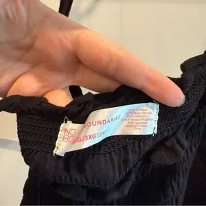 Stylish black camisole with ruffled details. Perfect for casual or dressy occasions. No Boundaries brand, size XXXL, great condition, no noticeable flaws. See tag in picture for material details.