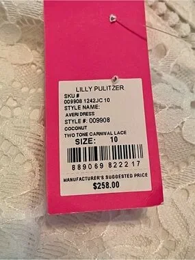 Beautiful and feminine lace dress by Lilly Pulitzer, perfect for bridal events, showers, or special occasions. Brand new with tags!