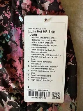 Lululemon Hotty Hot HR Skirt Long - Stencil Blossom Red Multi/Sheer Blu - Size 4