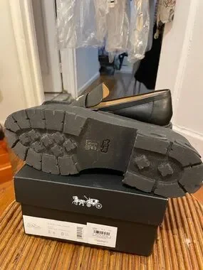Coach Black Chunky Platform Loafers with Gold Logo