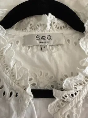Sea New York White Eyelet Tie-Front Puff Sleeve Blouse