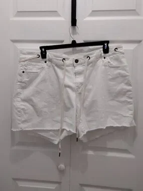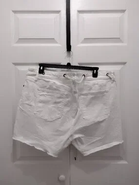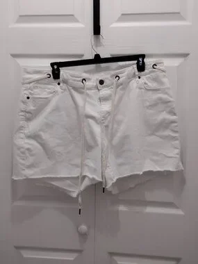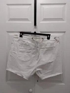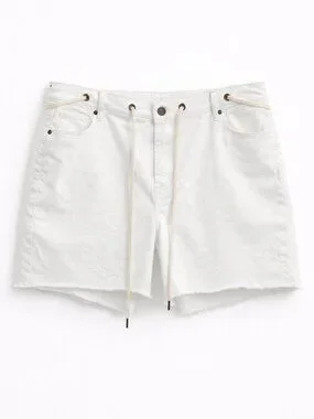 LOFT Plus Size 22 White Denim Shorts NWOT Drawstring Waist Frayed Hem Casual Sum