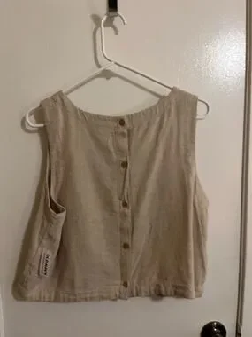 Old Navy Beige Sleeveless Linen-Blend Tank Top