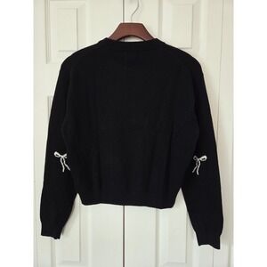 J. Crew Perfect Cashmere Crewneck Sweater Bow Print XXS Black White NWT $188