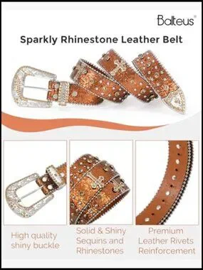 Sparkly Rhinestone Diamond Sequin Studded Belt Faux Leather Western