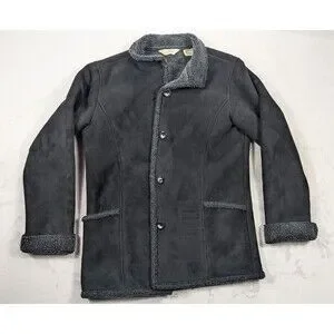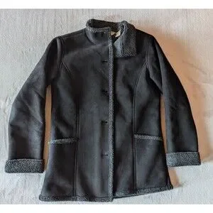 LL Bean Women’s XS Faux Suede Sherpa Lined Coat Black Charcoal 0WL05