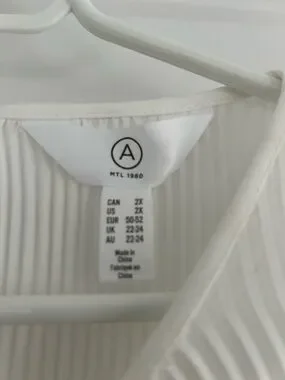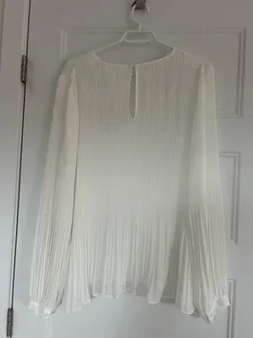Elegant cream pleated blouse with long sleeves. Lightweight, flowy fabric for comfortable all-day wear. Versatile style that dresses up or down. Easy-care design with a refined neckline.