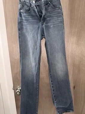 Classic straight leg high rise jeans. Designed for everyday comfort with a clean, versatile silhouette. Pairs easily with tees or blouses for a polished casual look.