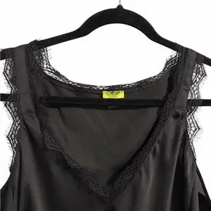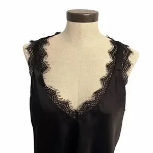 Stella & Dot Tank Top Black V Neck Satin Lace Sleeveless Stretch Womens XL
