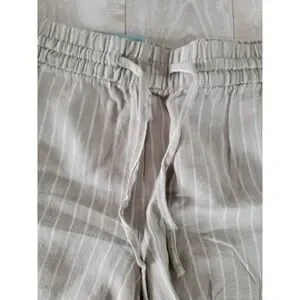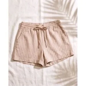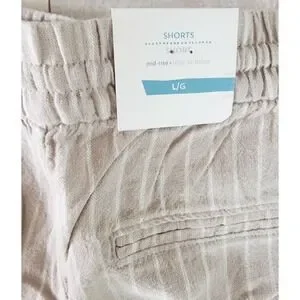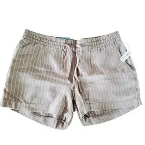 Old Navy L Womens Tan White Striped Linen Blend Pull On Shorts Mid Rise NWT