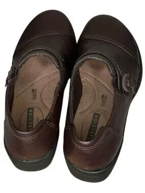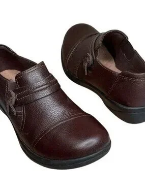Clarks Collection Brown Leather Slip-On Comfort Loafers Women’s Size 6M