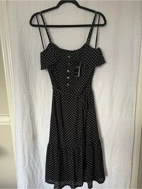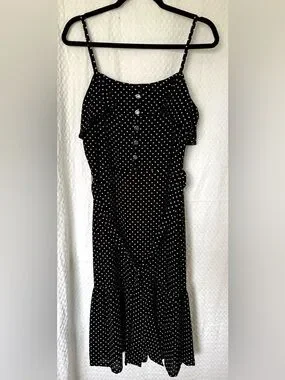 Lauren Ralph Lauren Black Polka Dot Midi Dress Sz. 12 NWT Spaghetti Strap Ruffle