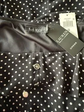 ralph lauren dress polka dot midi dress black midi dress size 12 summer dress ruffle dress classic style preppy chic feminine