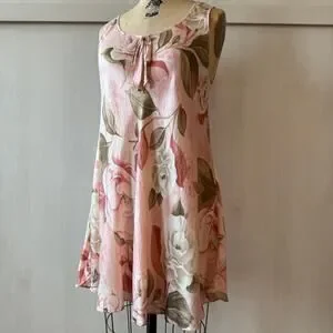Vtg 90s SILX by August Silk 100% Silk Pink Rose Floral Mini Dress
