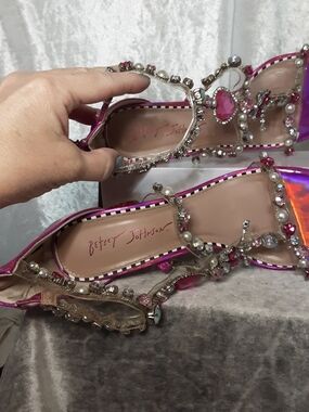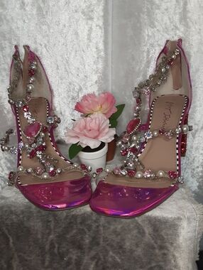 Betsey Johnson Hot Pink Rhinestone Dress Shoes With Glitter Heels