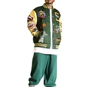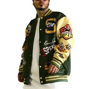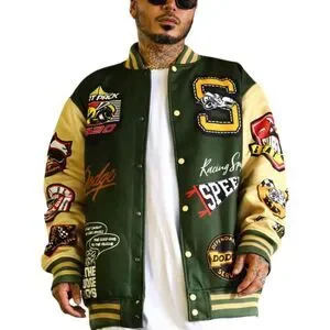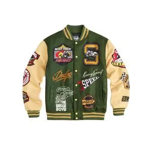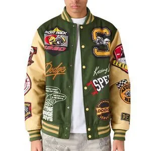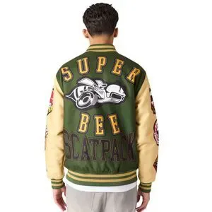 Reason x Dodge Scatpack Varsity Jacket Men Large Green Khaki Letterman Bomber