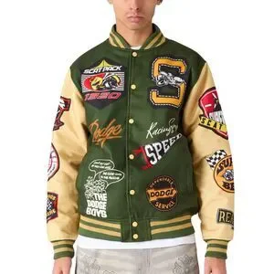 Reason x Dodge Scatpack Varsity Jacket Men Large Green Khaki Poly Wool Letterman Bomber
