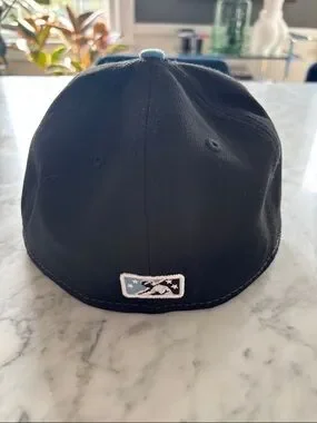 New Era structured snapback with a two-tone crown. Light blue flat brim and matching button. Embroidered New Era logo on the side. Clean, modern streetwear look.