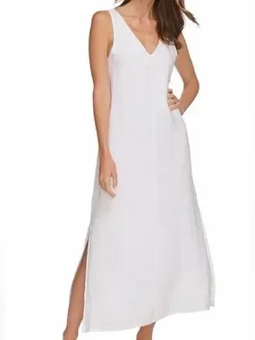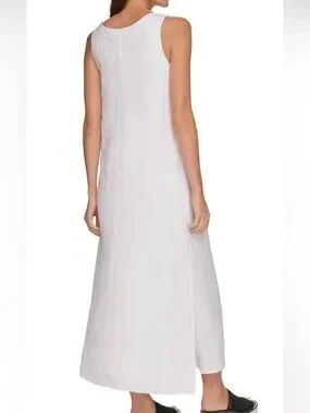 🆕DKNY Pure White Linen Maxi Dress Sleeveless Side Slit Summer Dress Size S Chic