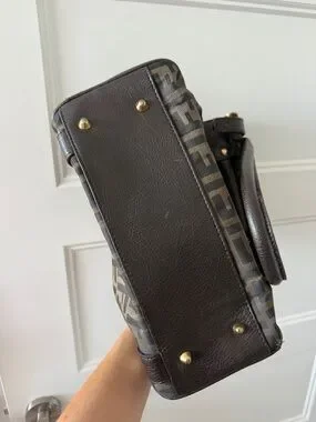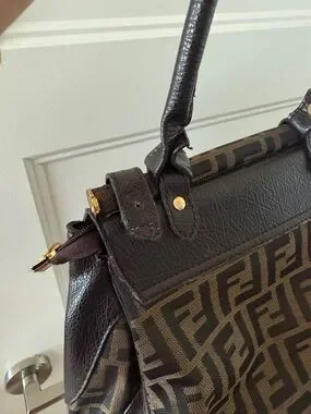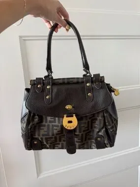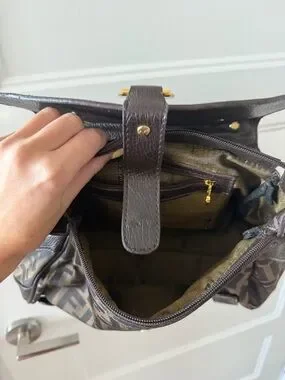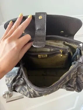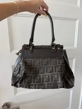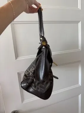 Authentic Vintage Fendi Brown Zucca Canvas and Leather Shoulder Bag
