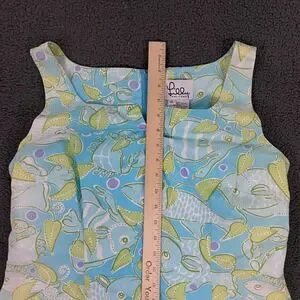 Vintage Lilly Pulitzer Dress size 14 Fish Print Tropical Summer Sleeveless Blue