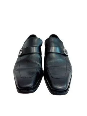 This is an authentic pair of Gucci Interlocking G leather shoes in black. The shoes feature the iconic interlocking G hardware as the central design element, showcasing Gucci's signature luxury branding.
