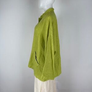 Bryn Walker Womens Large Lime Green 100% Linen Oversized Button Front Shirt USA