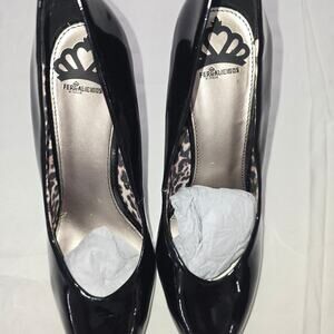 Fergalicious by Fergie Black Patent Leather Pump Leopard Print Women's Size 10