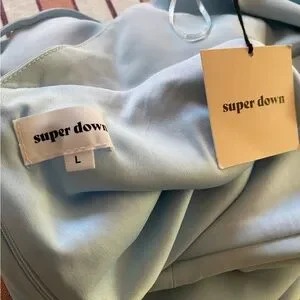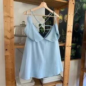 Revolve Superdown Baby Blue Deep V-Neck Sammie Mini Skater Dress Large