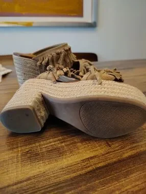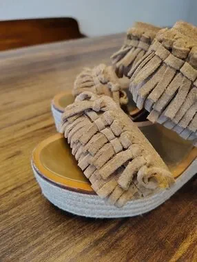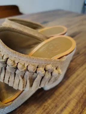 Tory Burch Fria Knotted-Fringe Espadrille Slide Suede Platform Sandals Size 6