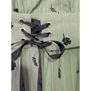 Sage Green Botanical Maxi Dress Corset Waist Cottagecore Small