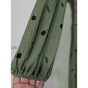 Color: Sage green with black botanical print