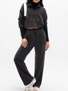 Athleta Seasoft Rib 1/4 Zip Popover in Black Women's Size Large Suede-soft Crop
